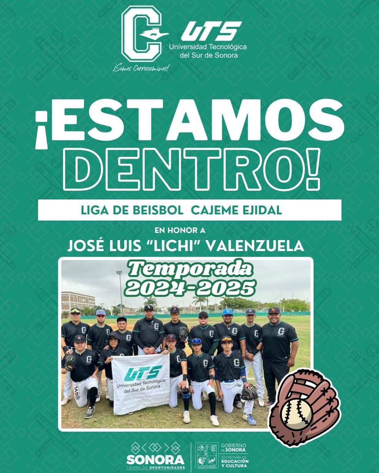 Con la participación de ocho destacados equipos de la región dio inicio la poderosa Liga Cajeme Ejidal de Beisbol, que en su XIII Edición rinde un homenaje al gran beisbolista José Luis “Lichi Valenzuela”, en la que los Correcaminos de la Universidad Tecnológica del Sur de Sonora (UTS) debutaron con el pie derecho al imponerse a su similar del Ejido Pancho Villa.