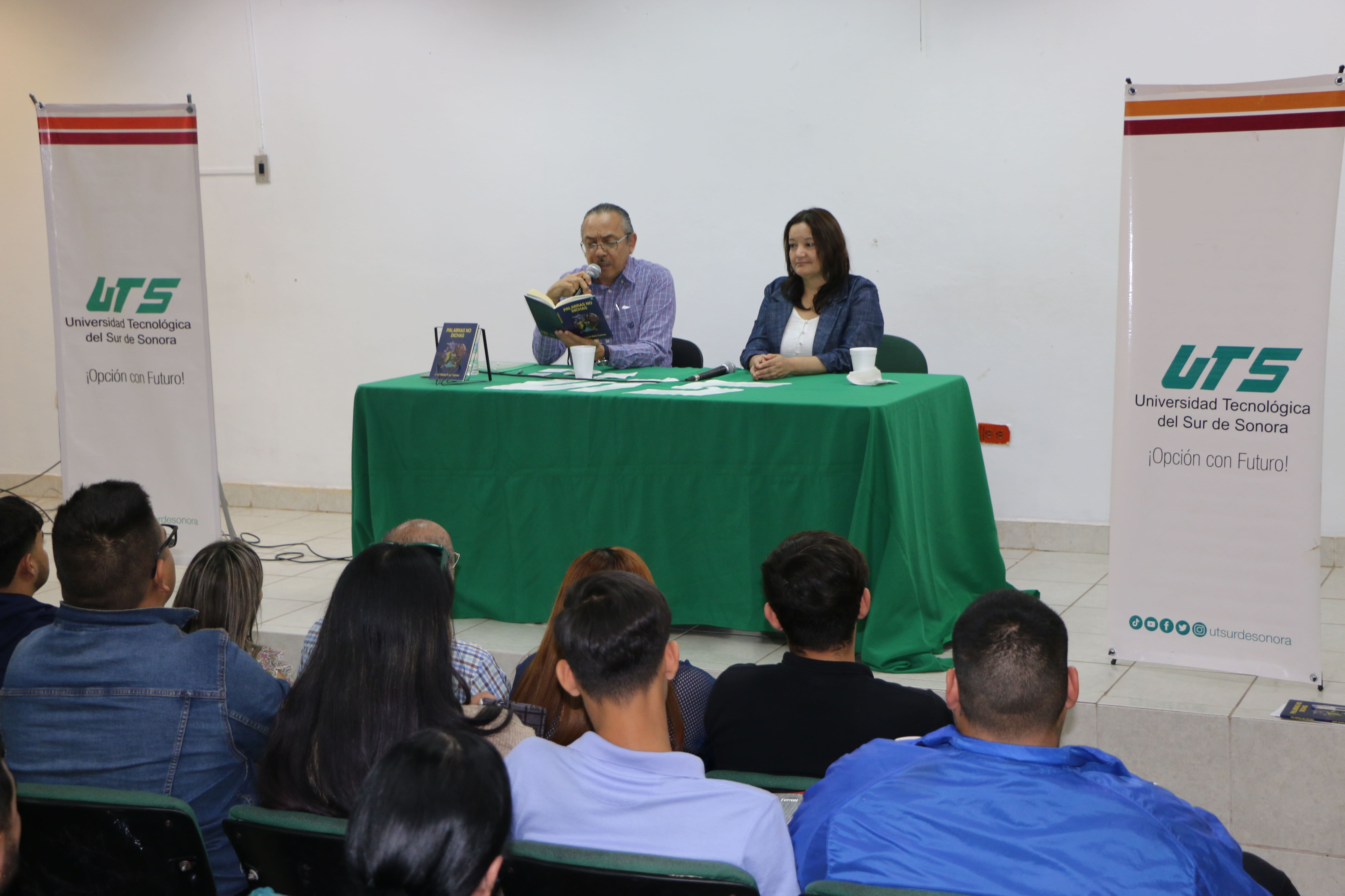 En el marco de las actividades de la agrupación, Bajo el Asedio de los Signos, alumnos de la carrera de Desarrollo de Negocios del nivel Técnico Superior Universitario y Licenciatura de la Universidad Tecnológica del Sur de Sonora (UTS),recibieron la plática del libro, “Palabras no dichas” del autor, José María Ruíz Cuevas.