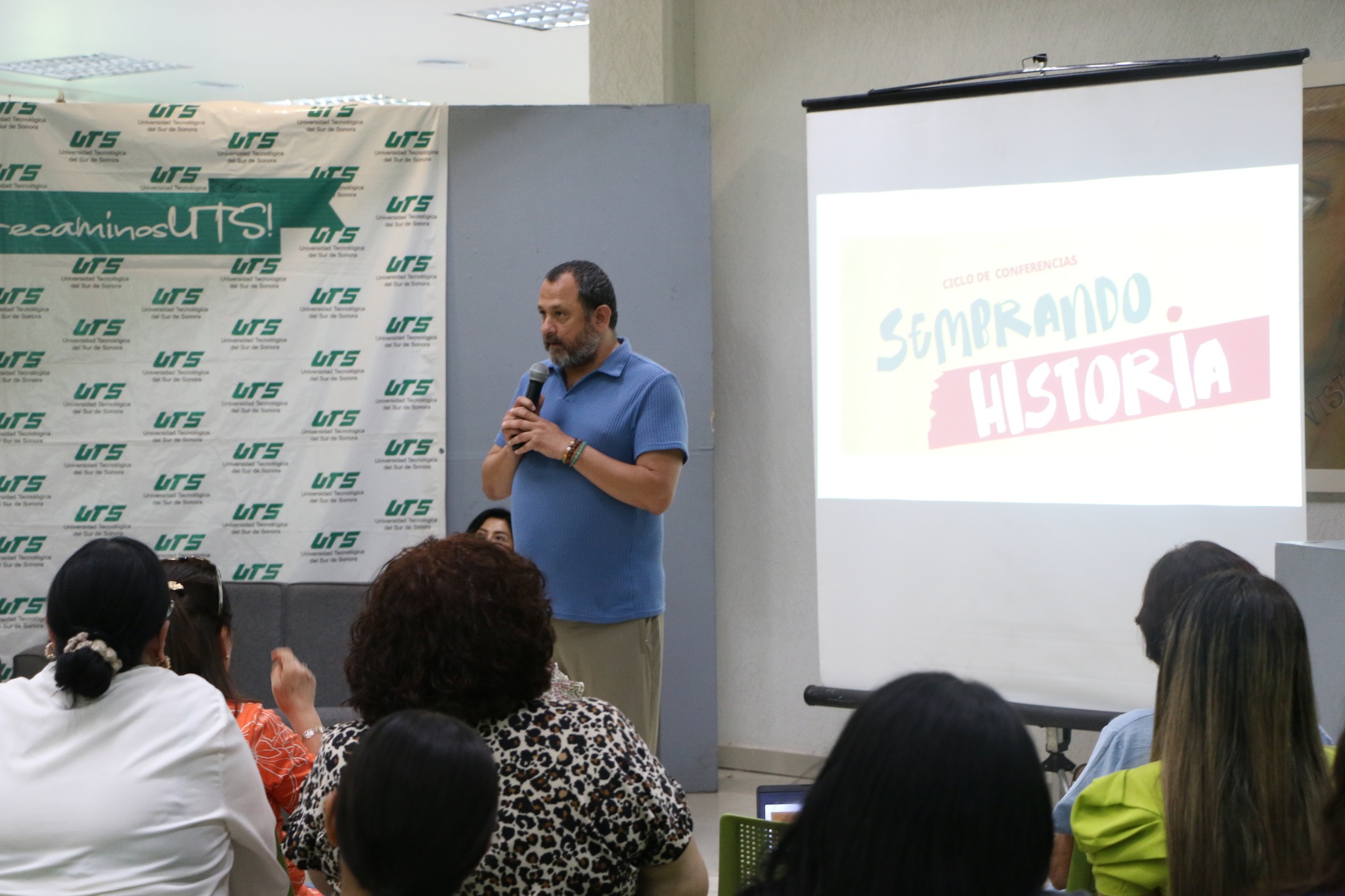 En el marco del vigésimo tercer aniversario de la Universidad Tecnológica del Sur de Sonora (UTS) y como parte de las acciones de equidad de género a favor de la comunidad universitaria, se llevó a cabo la conferencia “Reglamento para la Igualdad entre Mujeres y Hombres del Municipio de Cajeme”, impartida por la Lic. Guadalupe Hernández Flores, Coordinadora del Colectivo por la Educación, Democracia y Género e integrante del Consejo de Vinculación y Pertinencia, así como por el Lic. Guillermo Alfaro Cázares, integrante del mismo colectivo.