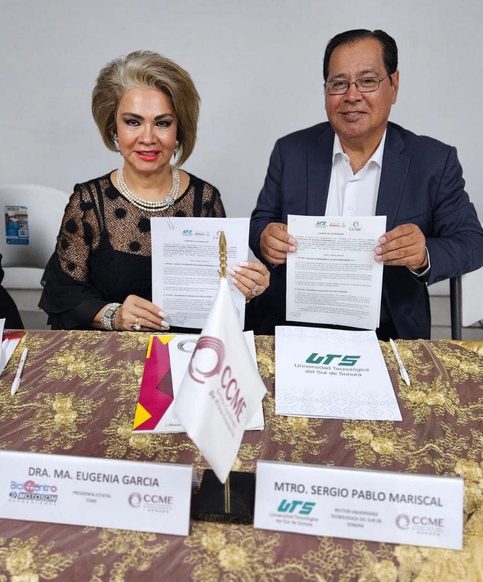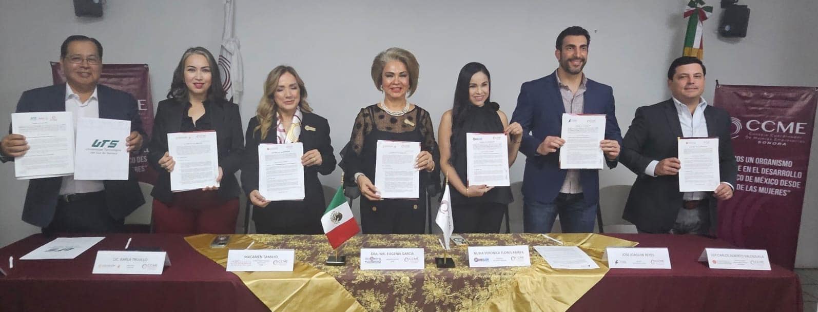 En la línea de coadyuvar a la solución de problemas mediante el abordaje científico y tecnológico a los sectores productivos que plantea el gobierno de México, y coincidiendo con la política del Gobernador Dr. Alfonso Durazo Montaño de acompañar a la sociedad desde el sector universitario, la Universidad Tecnológica del Sur de Sonora (UTS) estableció junto a otras instituciones de educación superior y organismos empresariales, un convenio de colaboración con el Consejo Coordinador de Mujeres Empresarias (CCME), capítulo Sonora, que preside María Eugenia García Ruiz, mediante el cual reforzará los proyectos que se están instrumentando.