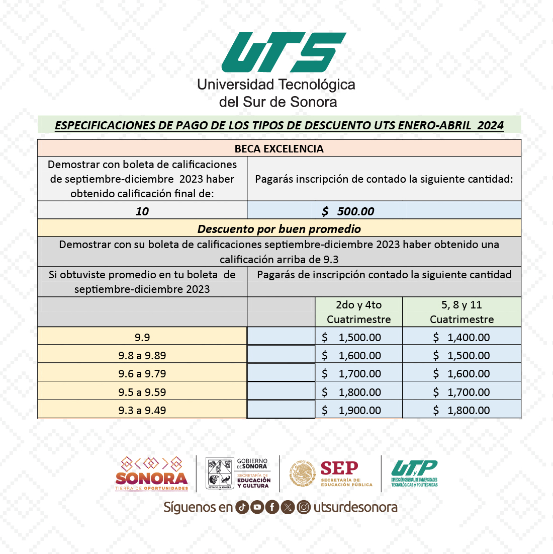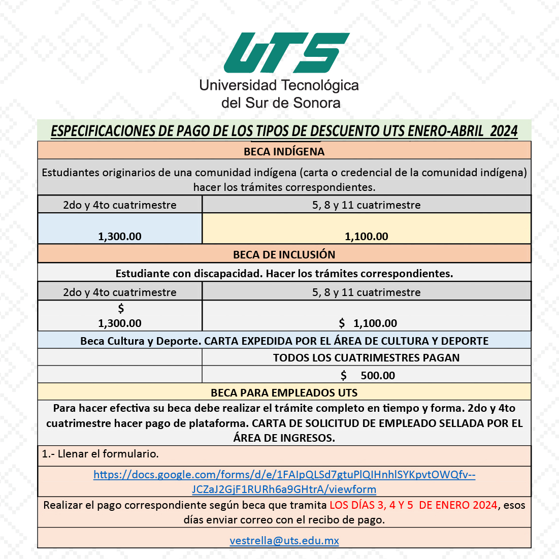 Dirección: Dr. Norman E. Borlaug Km. 14. Cd Obregon, Sonora. C.P. 85000Teléfonos: (644) 414-8687Correo Electrónico: comunicacion@uts.edu.mx