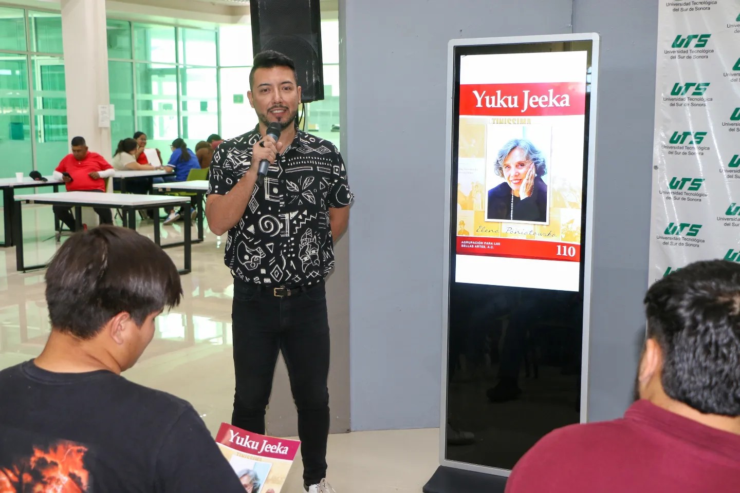 Cajeme, Sonora; 29 de mayo de 2024.- La Biblioteca “Elena Poniatowska Amor” de la Universidad Tecnológica del Sur de Sonora (UTS), fue el escenario ideal para la presentación de la Revista Juku Jeeka, editada por la Agrupación para las Bellas Artes (APALBA); y que en su edición 110 rinde homenaje a la trayectoria de la mencionada escritora y periodista mexicana.