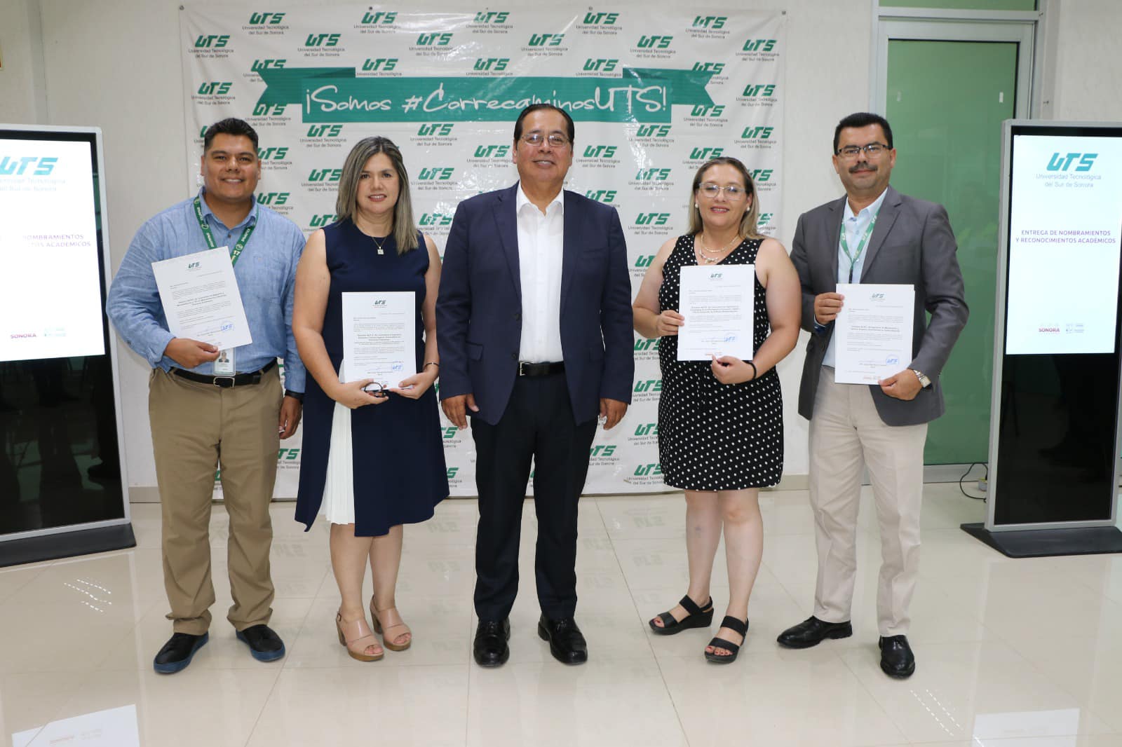 Cajeme, Sonora; 09 de agosto de 2024. Con la finalidad de fortalecer los procesos que se llevan a cabo al interior de la Universidad Tecnológica del Sur de Sonora (UTS) y mantener la calidad en el proceso educativo, se llevó a cabo la entrega de nombramientos y reconocimientos académicos, en una ceremonia presidida por el Mtro. Sergio Pablo Mariscal Alvarado, Rector de esta Casa de Estudios.